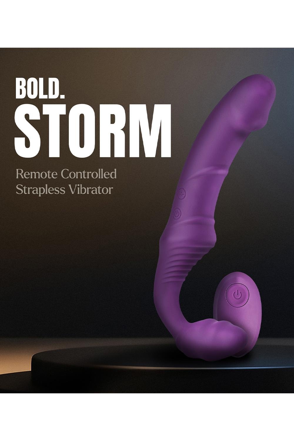 Meet STORM, the strapless vibrator designed to let you and your partner share every pulse, every curve, and every thrilling moment together. With its ergonomic, body-safe silicone design, STORM moves naturally with your body, while the beaded shape builds intensity with each curve for deeper, more electrifying sensations.