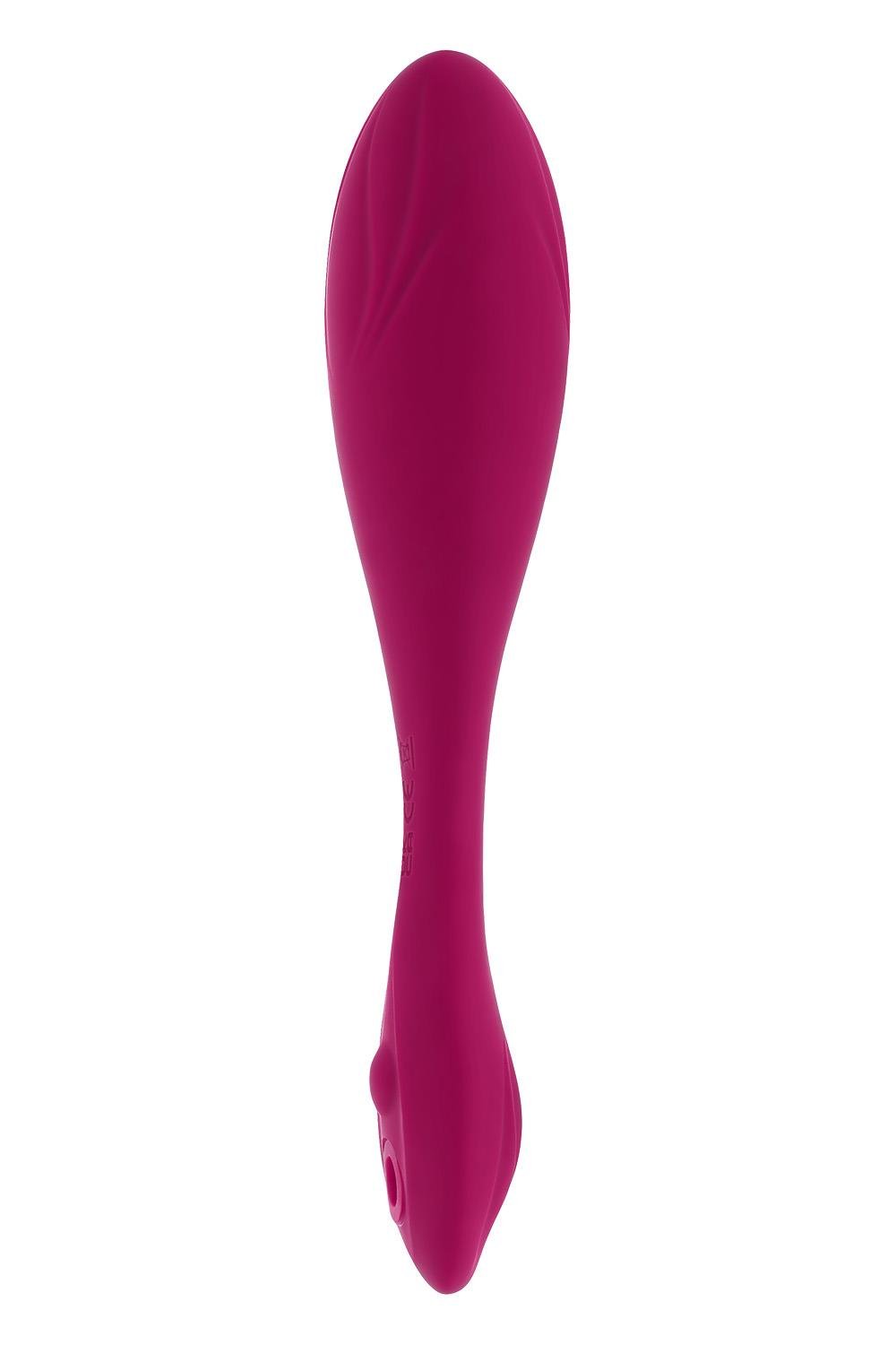 Strike a cherry pose with this flexible, poseable vibrator that stays just how you bend it. Powerful vibrations emanate from each textured head simultaneously to bring you double the pleasure no matter what curve you choose. One end swells to a bulbous girth with a tapered tip while the smaller end is oval shaped with a center bulge. Share your experience or make it hands-free with the 30' range remote control.