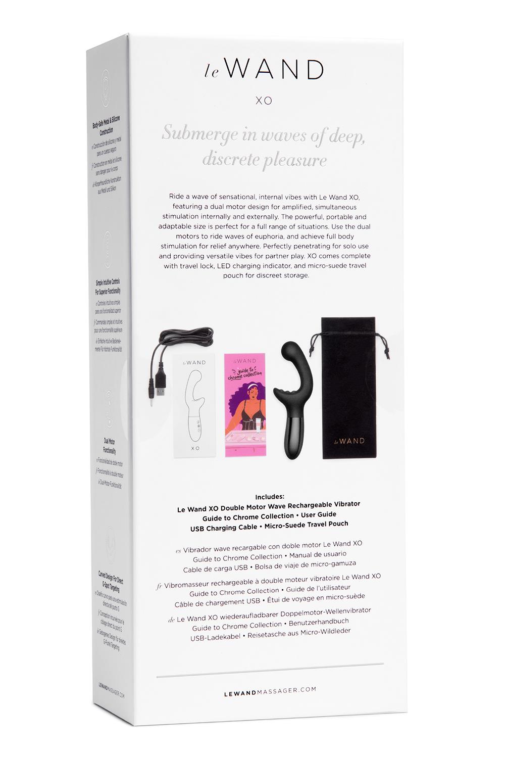 Le Wand Xo, double motor wave rechargeable vibrator. Ride a wave of sensational, internal vibes with Le Wand Xo, featuring a dual motor design for amplified, simultaneous stimulation internally and externally. The powerful, portable and adaptable size is perfect for a full range of situations. Use the dual motors to ride waves of euphoria, and achieve full body stimulation for relief anywhere. Perfectly penetrating for solo use and providing versatile vibes for partner play. Xo comes complete with travel lock, LED charging indicator, and micro-suede travel pouch for discreet storage.