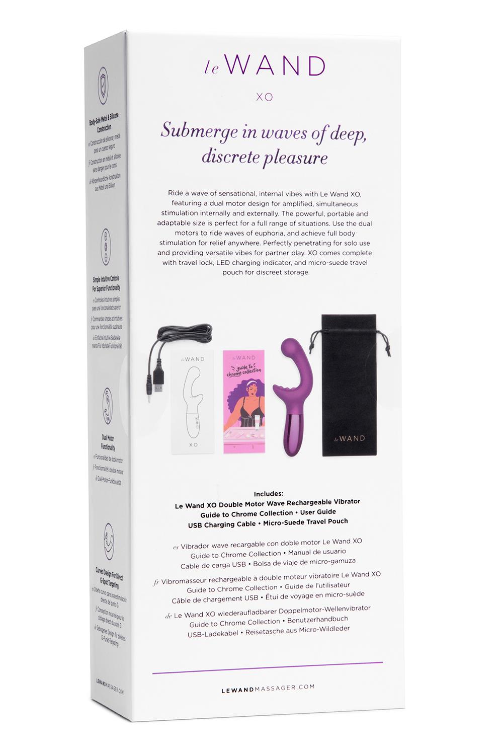 Le Wand Xo, double motor wave rechargeable vibrator. Ride a wave of sensational, internal vibes with Le Wand Xo, featuring a dual motor design for amplified, simultaneous stimulation internally and externally. The powerful, portable and adaptable size is perfect for a full range of situations. Use the dual motors to ride waves of euphoria, and achieve full body stimulation for relief anywhere. Perfectly penetrating for solo use and providing versatile vibes for partner play. Xo comes complete with travel lock, LED charging indicator, and micro-suede travel pouch for discreet storage.