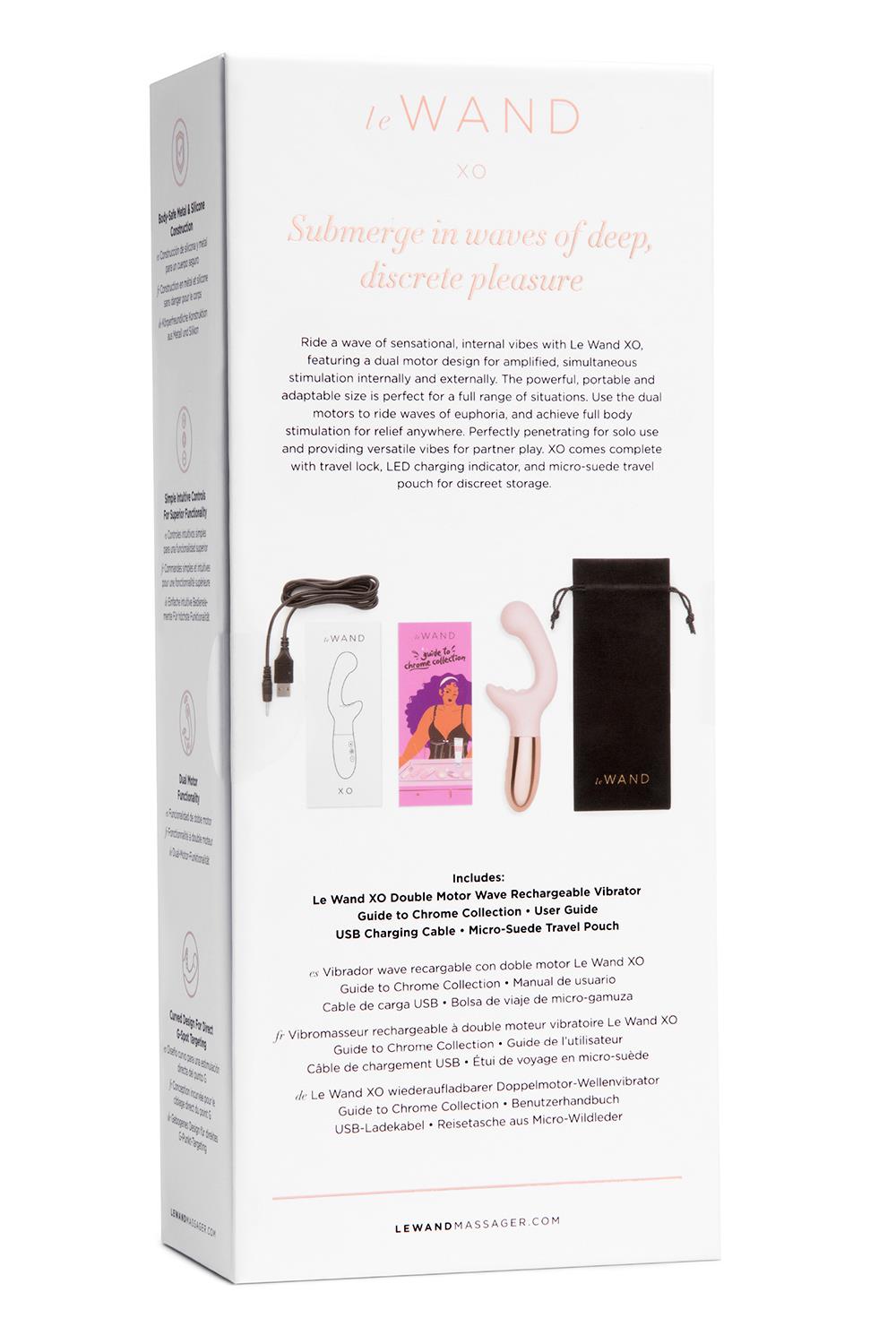 Le Wand Xo, double motor wave rechargeable vibrator. Ride a wave of sensational, internal vibes with Le Wand Xo, featuring a dual motor design for amplified, simultaneous stimulation internally and externally. The powerful, portable and adaptable size is perfect for a full range of situations. Use the dual motors to ride waves of euphoria, and achieve full body stimulation for relief