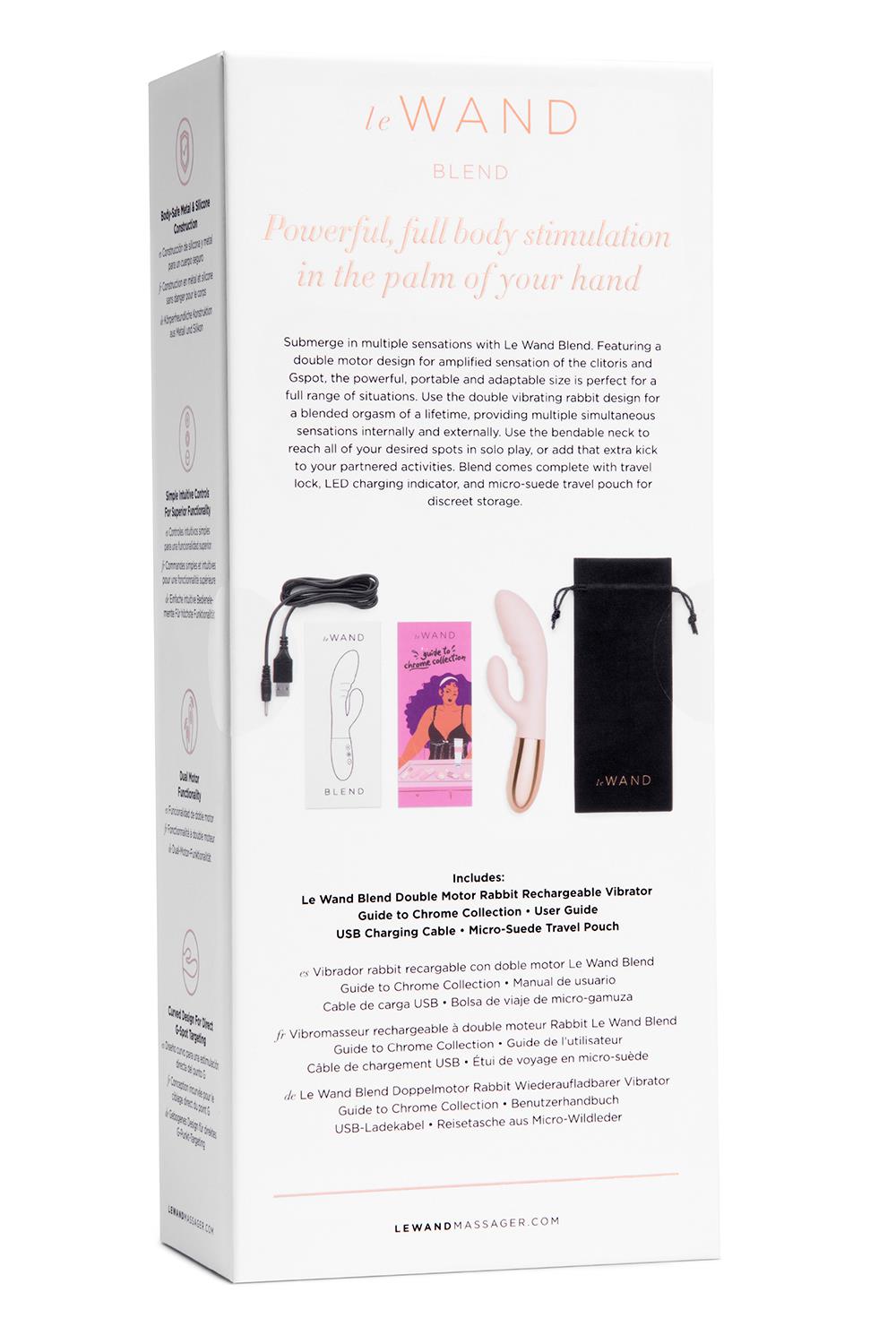 Le Wand Blend, double motor rabbit rechargeable vibrator. Submerge in multiple sensations with Le Wand Blend. Featuring a double motor design for amplified sensation of the clitoris and Gspot, the powerful, portable and adaptable size is perfect for a full range of situations. Use the double vibrating rabbit design for a blended orgasm of a lifetime, providing multiple simultaneous sensations internally and externally. Use the bendable neck to reach all of your desired spots in solo play, or add that extra kick