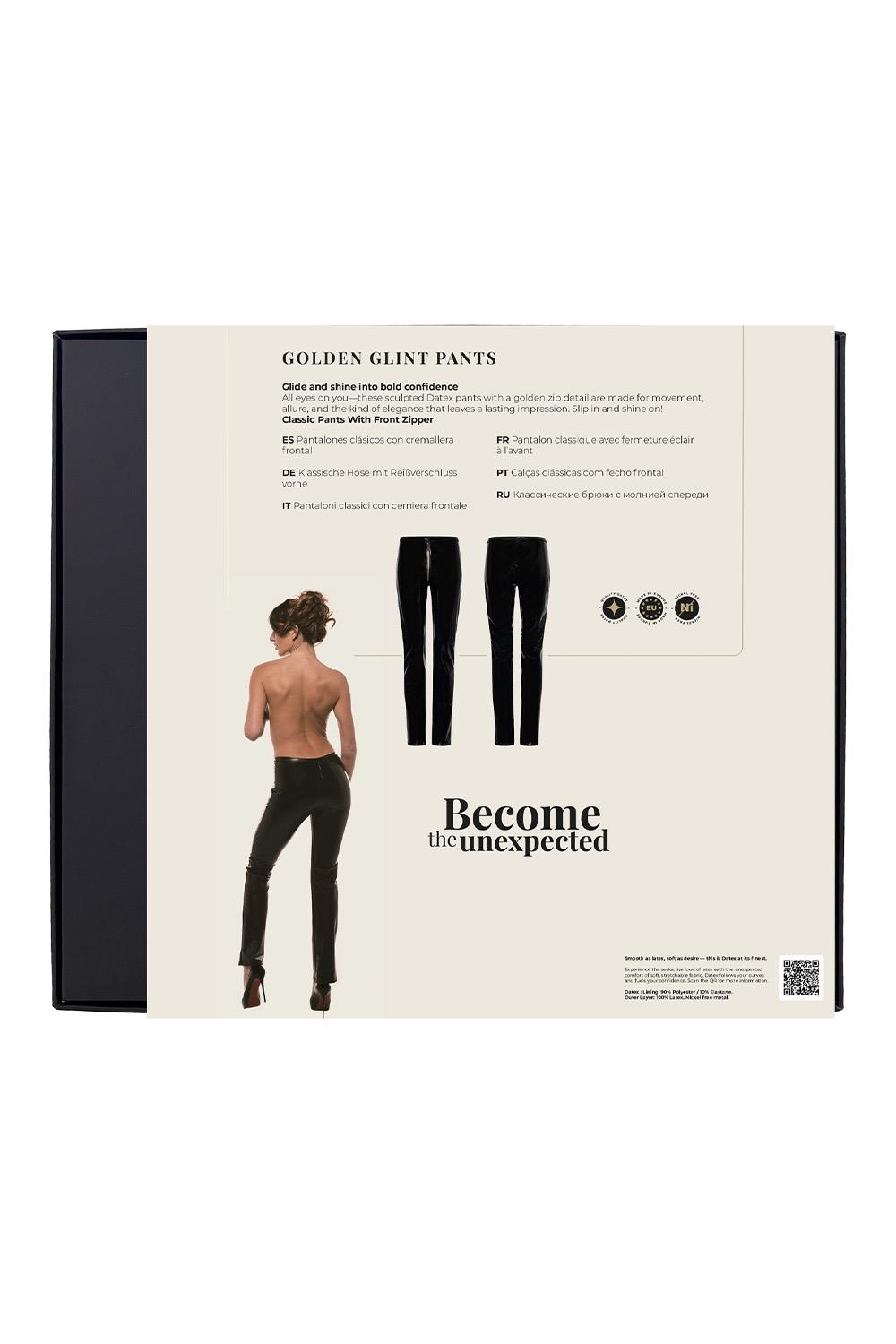 The Golden Glint Pants combine bold confidence with high-gloss sophistication. Crafted from premium Datex, these classic-cut pants contour the body with sleek precision, offering a silhouette that moves with intention and allure.
