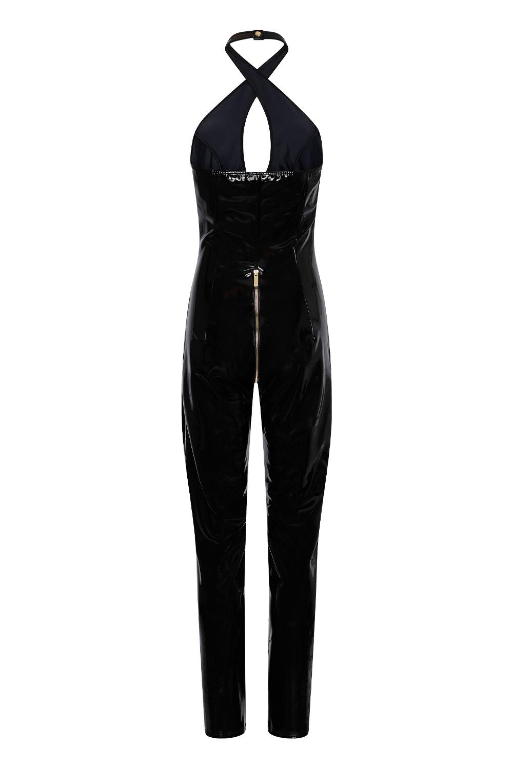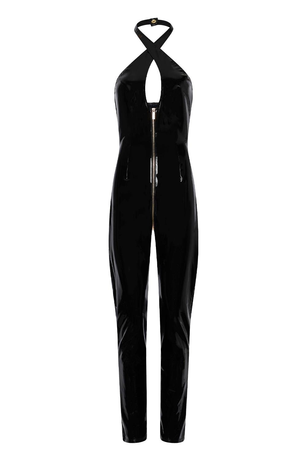 A gold-toned zipper runs from front to back, offering just enough reveal to stir curiosity and just enough coverage to stay in control. Whether worn to dominate the night or define a private moment, this catsuit is a statement of movement, power, and presence.