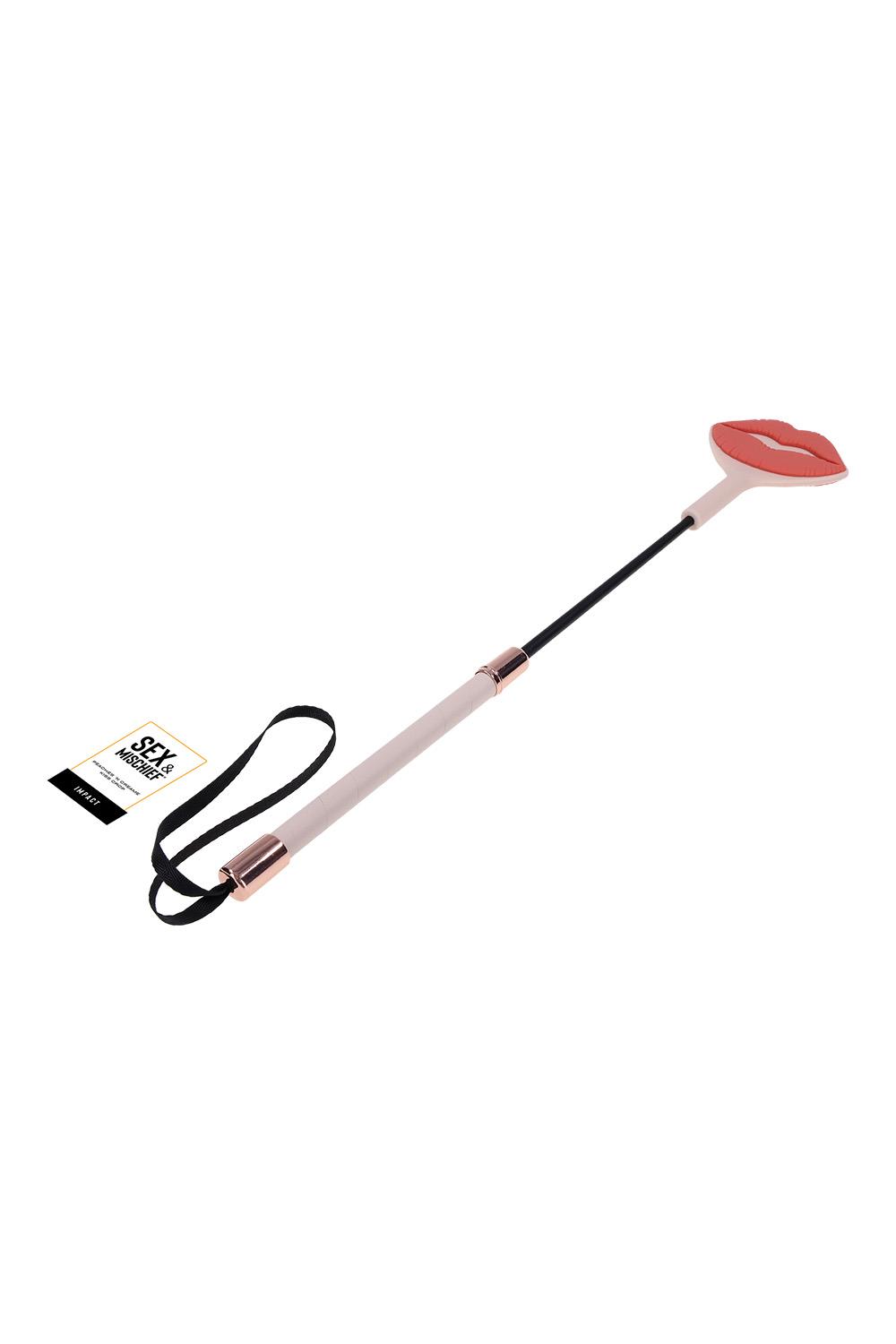 Seal the deal with a kiss they won’t forget. The Peaches ‘N CreaMe Kiss Crop features a soft, 100% silicone tip with a raised lip design that leaves a juicy kiss imprint with every well-aimed swat. The flexible yet firm tip delivers a sharp, satisfying sting that lingers on the skin and even longer in their memory. Adorned with gleaming rose gold accents and wrapped in peachy faux leather, the handle feels just as good in your grip as it looks. A matching wrist loop makes storage simple and impromptu play irresistible. With its flirty design and striking bite, this crop leaves a sensual mark that says, loud and clear: you were here.