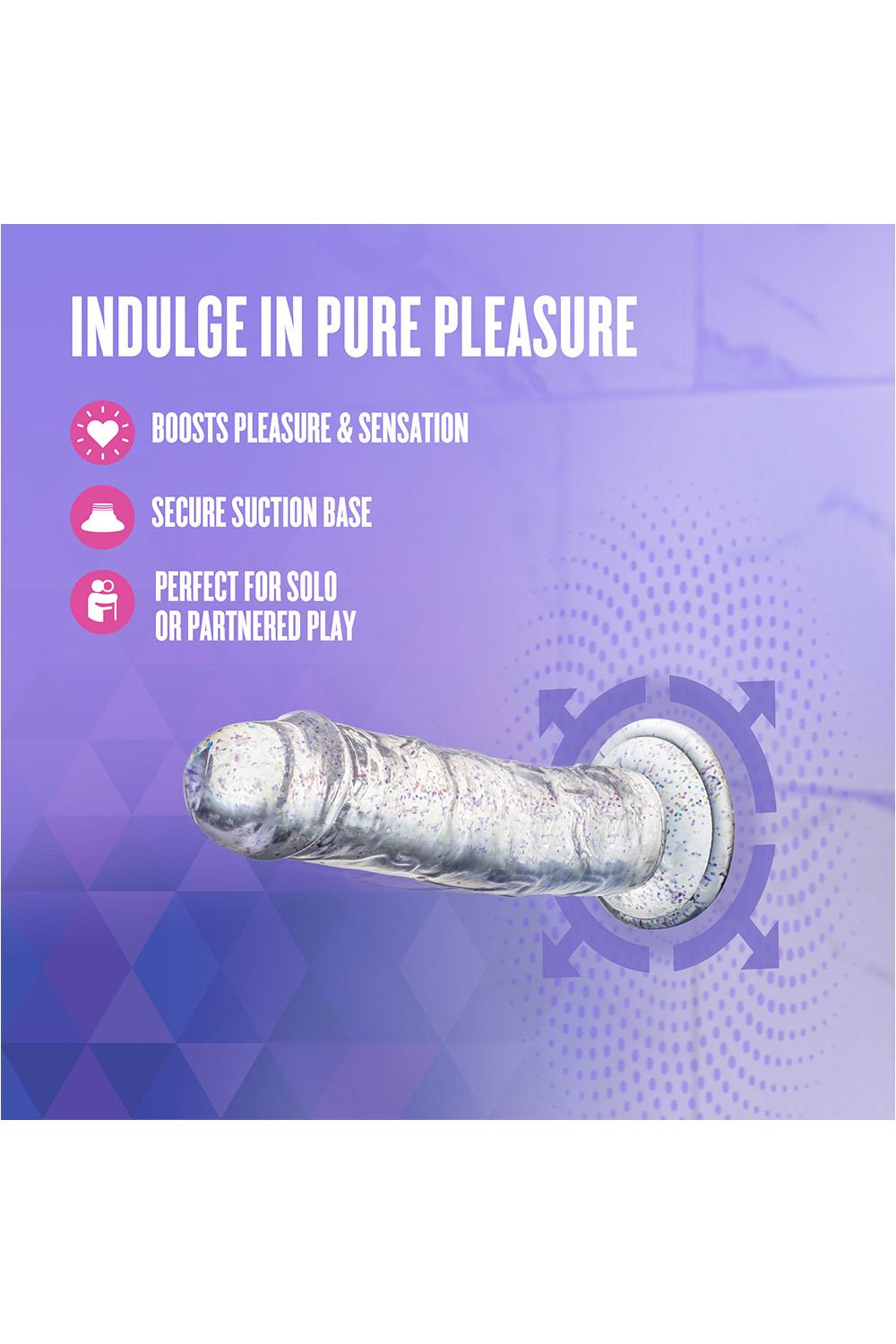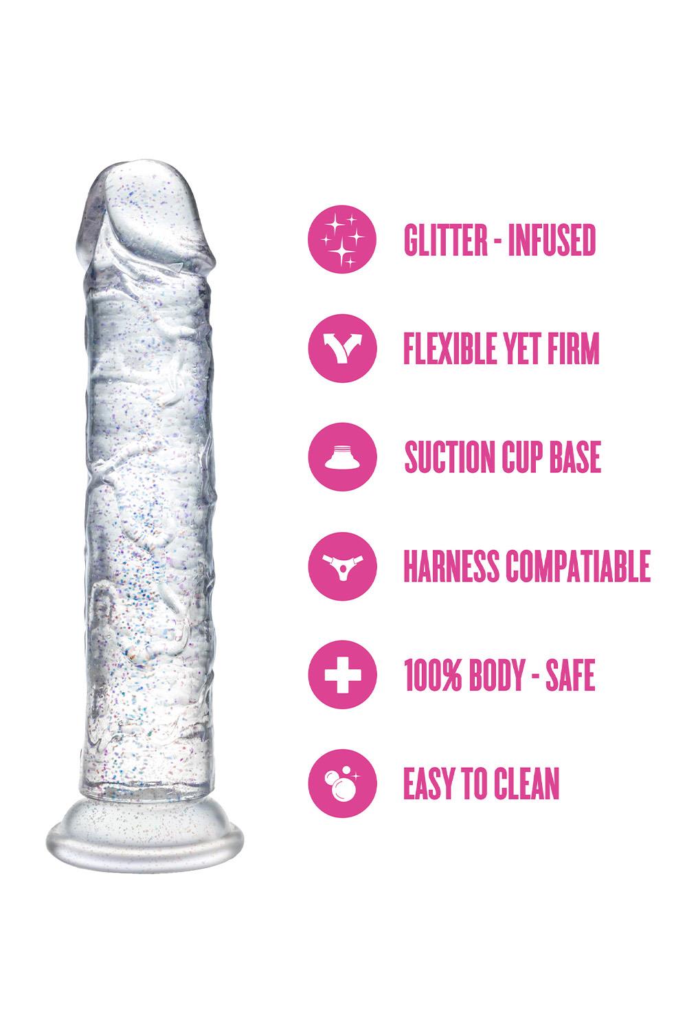 Step into the spotlight with Gala, the glittering star of your pleasure collection. With its radiant color and subtle sparkle, Gala adds a touch of glam to every intimate moment. Perfect for those who like their toys with a little extra flair. At 6 inches, it’s a versatile size that’s ideal for both solo exploration and partnered play. Designed to be flexible yet satisfyingly firm, Gala adapts to your movements while offering a fulfilling experience. The strong suction cup base secures easily to smooth surfaces for hands-free fun and is fully harness compatible, giving you endless options for playful discovery. With its 100% body-safe design, Gala is easy to clean and always ready for an encore. Whether you're indulging in a solo performance or sharing the stage with a partner, Gala ensures every scene ends with a standing ovation.