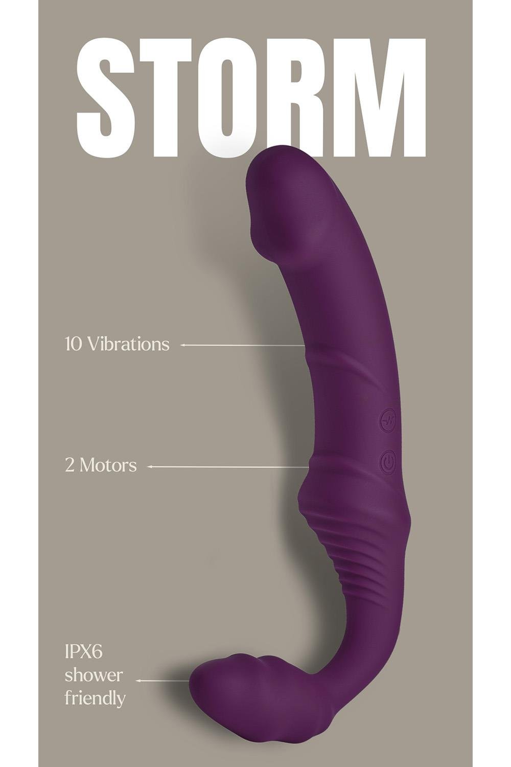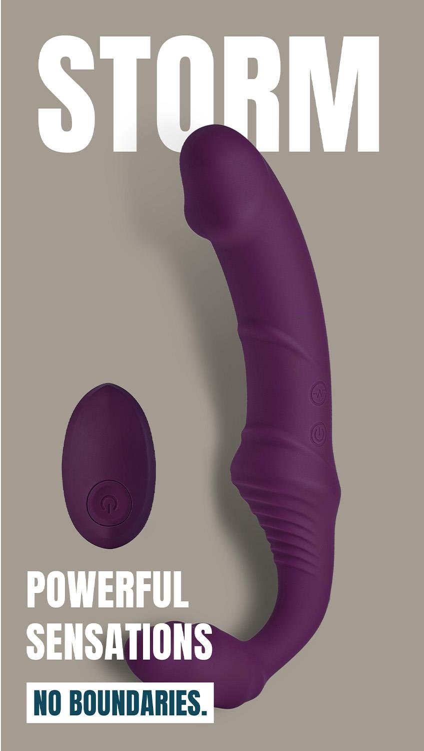 Meet STORM, the strapless vibrator designed to let you and your partner share every pulse, every curve, and every thrilling moment together. With its ergonomic, body-safe silicone design, STORM moves naturally with your body, while the beaded shape builds intensity with each curve for deeper, more electrifying sensations.