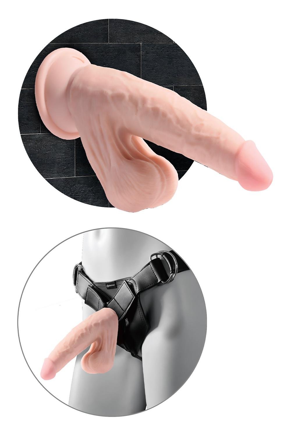 The 6"" King Cock® Plus® Triple Density Cock with Swinging Balls is made of new and improved Fanta Flesh® material, making it stiff on the inside and soft on the outside.What makes the Swinging Balls truly special is the carefully crafted construction of the stretchy sack and the incredible feel of the firm internal testicles! With every thrust, the balls come swing and slap against the body for added stimulation!