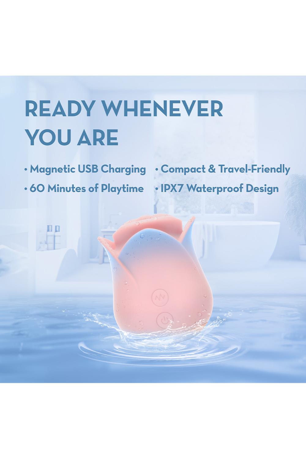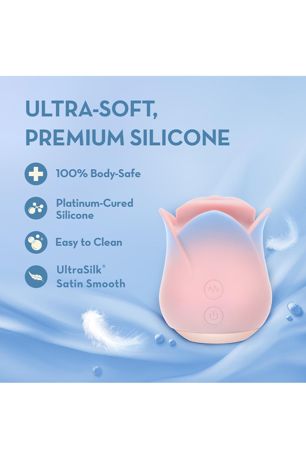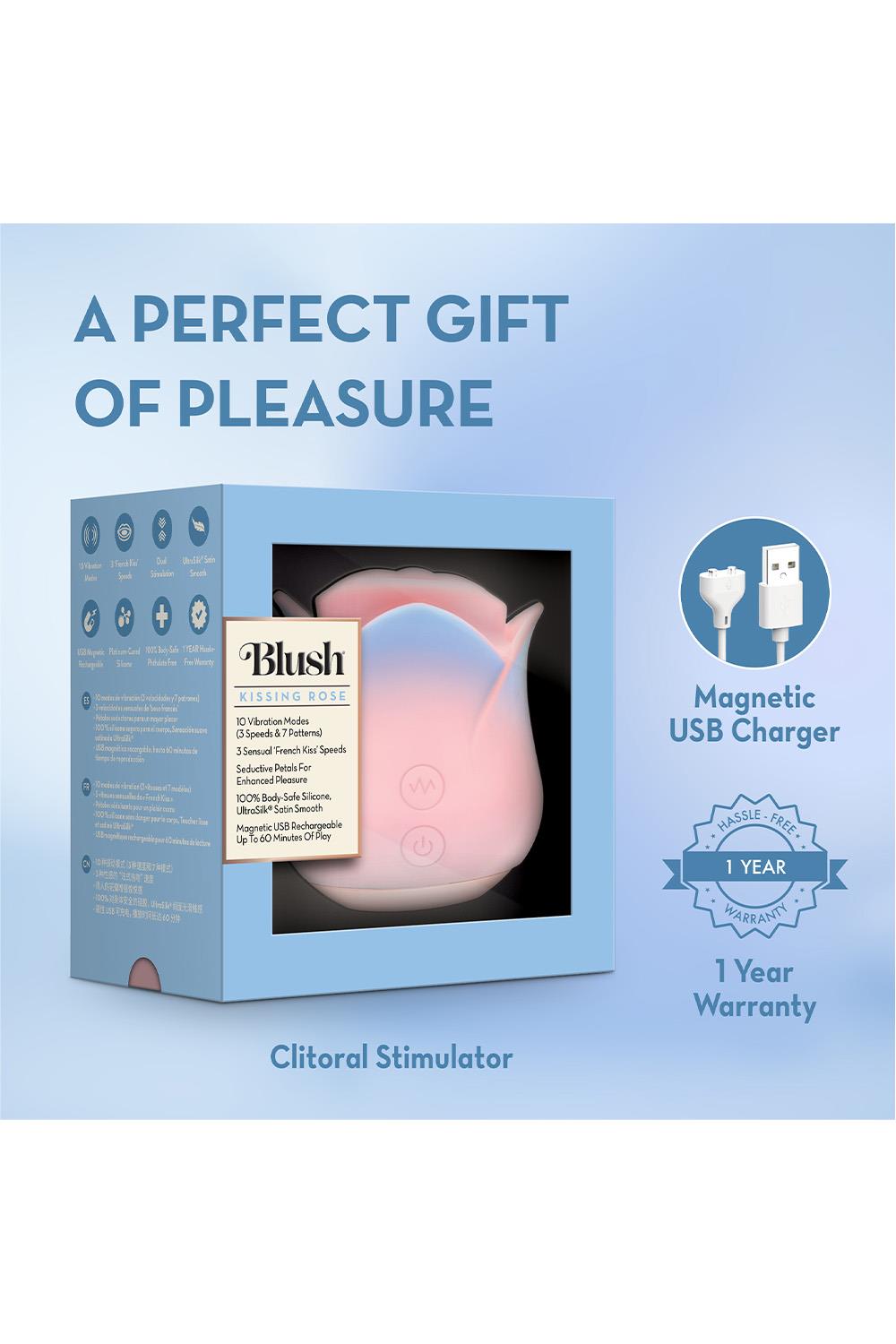 Inspired by romance and crafted for indulgence, the Kissing Rose from the Blush Collection invites you to explore deep, customizable pleasure. This elegant clitoral vibrator features 10 vibration modes (3 speeds & 7 patterns) and 3 sensual ‘French Kiss’ settings that mimic the gentle, rhythmic motion of a lover’s tongue. Let stimulation build arousal with every soft, teasing movement, warming up, edging, or indulging in a slow, satisfying climax. Made from 100% body-safe silicone with a smooth UltraSilk® finish, the Kissing Rose is designed for comfort, beauty, and pleasure. Sculpted petal-like ridges add a textured touch that enhances every pulse and movement, surrounding you with soft, layered sensation. Compact, splashproof, and magnetic USB rechargeable, it fits seamlessly into your self-care routine and is easy to use, clean, and store. Let your pleasure unfold, kiss by kiss.