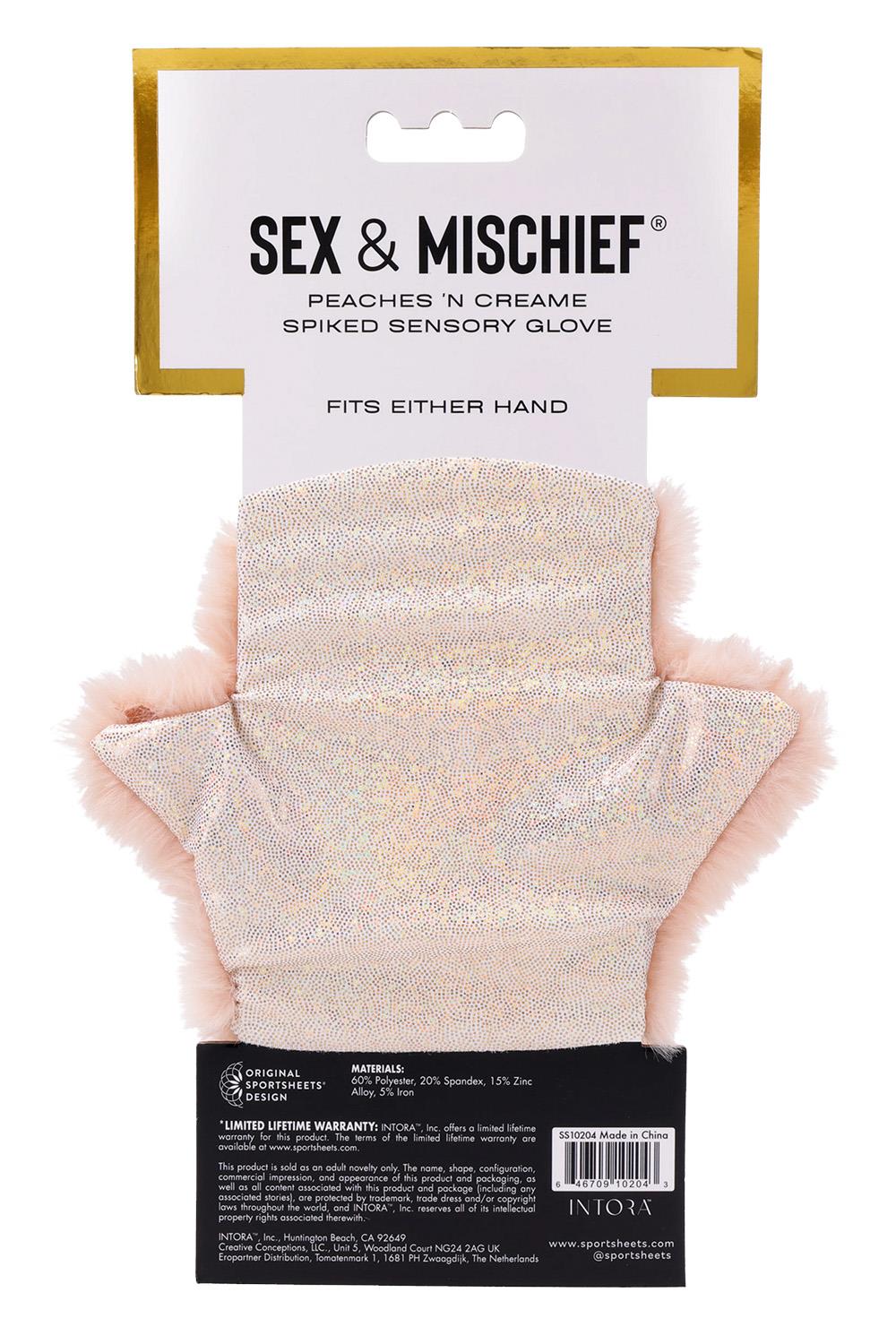 With the Peaches ‘N CreaMe Spiked Sensory Glove, you don’t have to choose. Tease, thrill, and command attention with every stroke, these palm gloves turn even the softest touch into an irresistible powerplay. The palm features a lush layer of faux fur that dances across the skin, paired with gleaming rose-gold spikes for a bold, uninhibited strike when the mood shifts. The shimmery, stretch Lycra back contours comfortably to your hand, while dedicated pinky and thumb slots keep the glove secure during every sultry session. Go from naughty to nice and leave them guessing and begging for more.