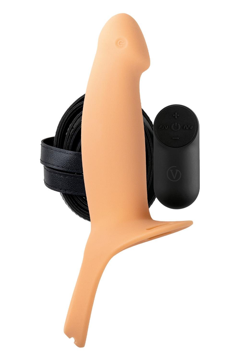 Hollow harness with rechargeable vibration to place the penis inside, made of 100% silicone. Thanks to its soft touch, it will feel like a real penetration. In addition, it incorporates a cavity to insert the testicles for greater support.