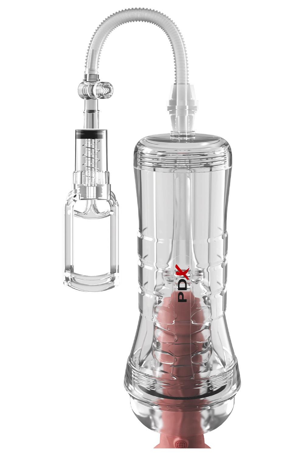 The PDX ELITE® VIEWTUBE VAC XXL Pump Stroker elevates masturbation with powerful EZ-Grip suction for the ultimate stroker experience. Its XXL size is perfect for those big jobs, and the crystal clear ViewTube design lets you see all the action! It’s the perfect combination for heightened solo sex sessions! Get ready for explosive ejaculations as the ultra-soft TPE sleeve nubbies massage your cock! The EZ-Grip trigger makes pumping easy as powerful suction pulls you in! Your ultimate stroking session is ready when you are!