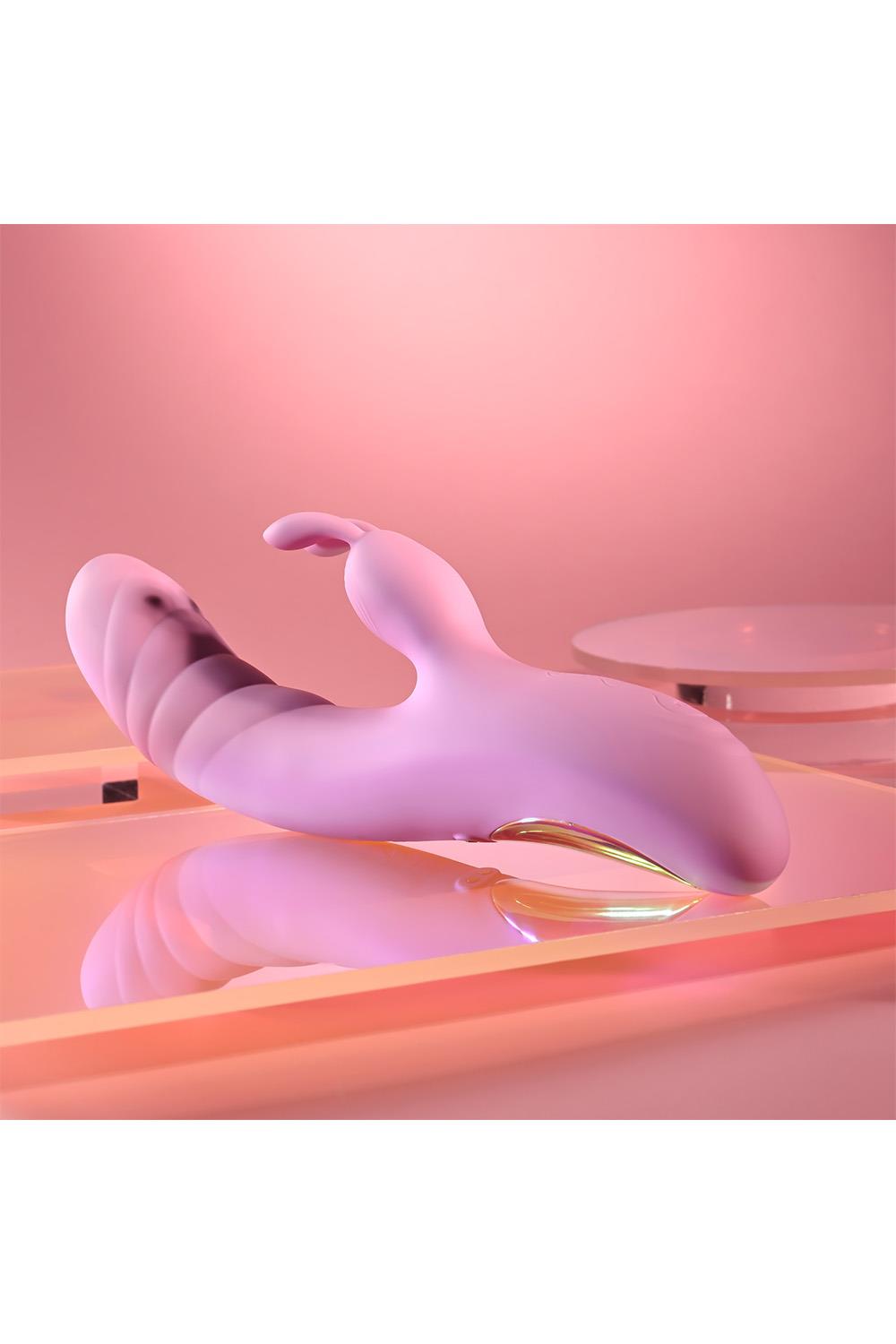This bunny knows just how to Rub Me Right! Tall and powerful with plenty of thrust, the curved textured main shaft is designed to reach your G-Spot effortlessly with its swelling angled head that vibrates in 9 speeds and rhythms. Meanwhile the rabbit stimulator buzzes tirelessly, flexing with your body and letting its floppy ears tease the clitoris to a wildly satisfying climax. The ergonomic handle lets you relax in comfort as you adjust the vibes and shaft thrust to find your perfect combination – even under water as it’s completely submersible.