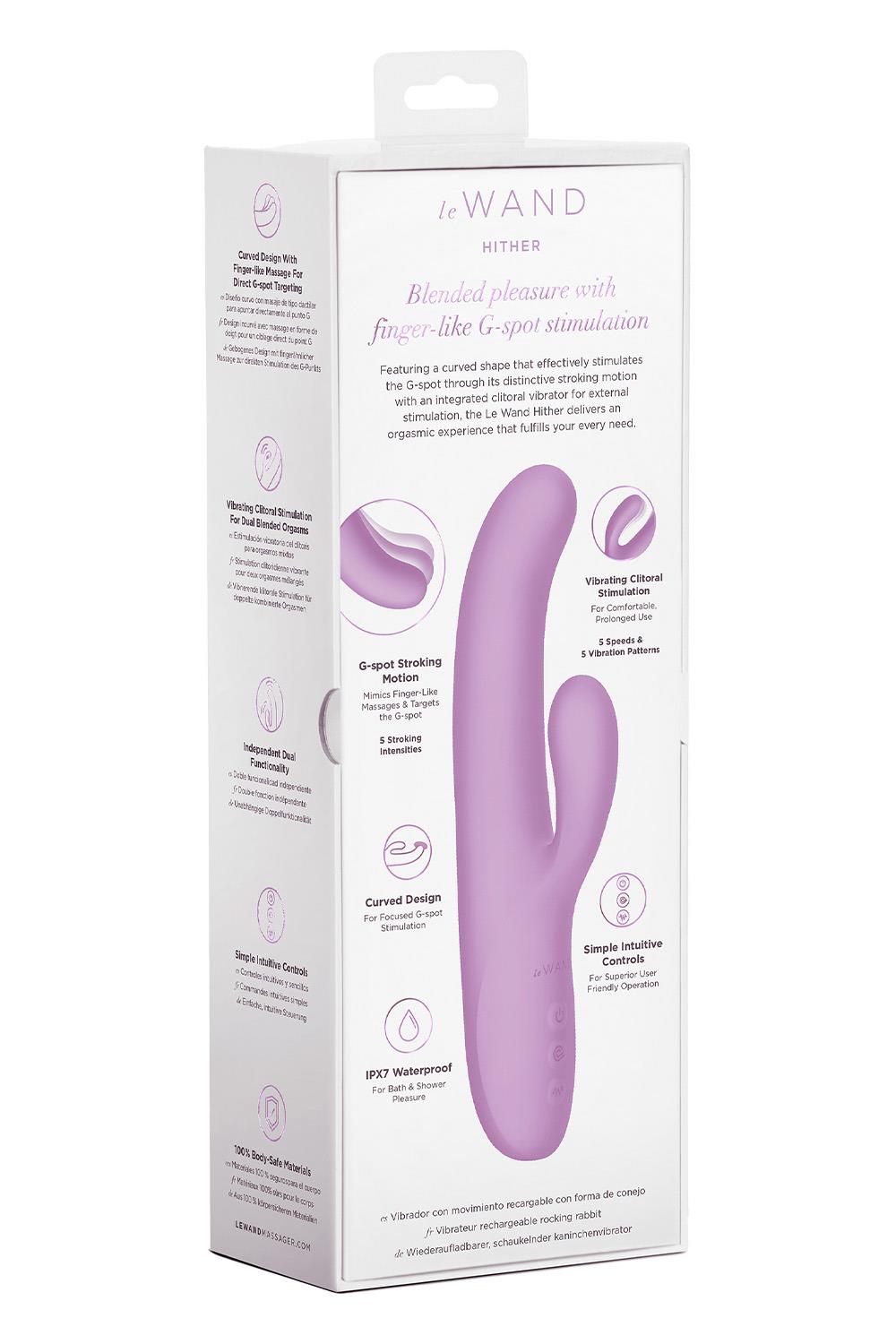 Featuring a curved shape that effectively stimulates the G-spot through its distinctive stroking motion with an integrated clitoral vibrator for external stimulation, the Le Wand Hither delivers an orgasmic experience that fulfills your every need.