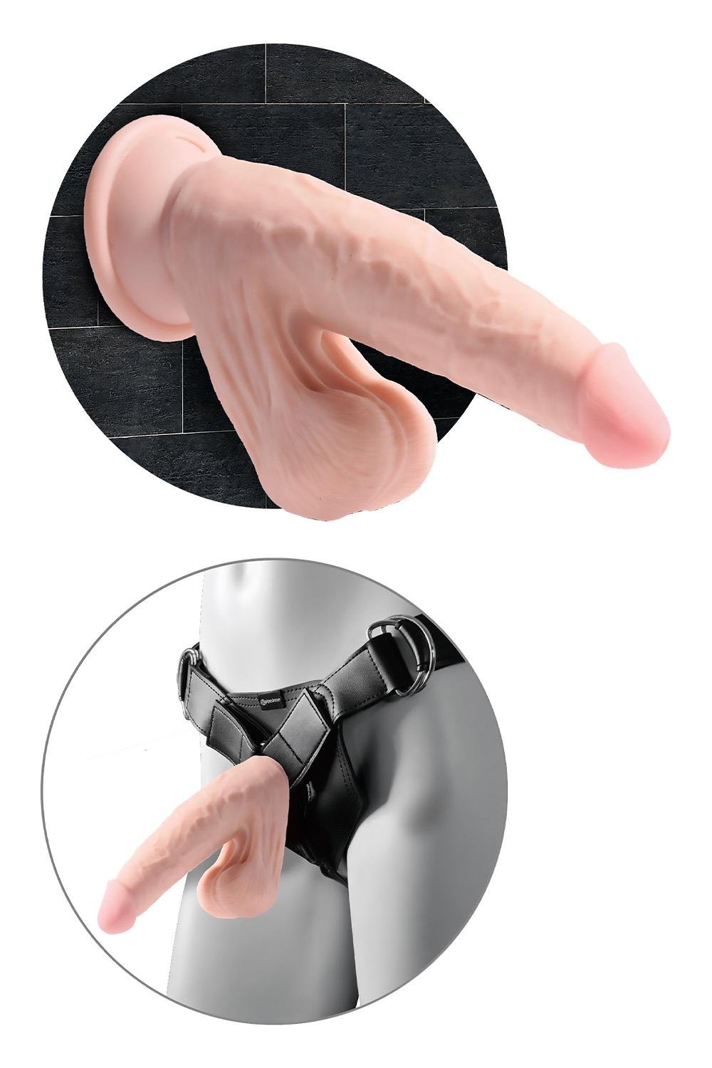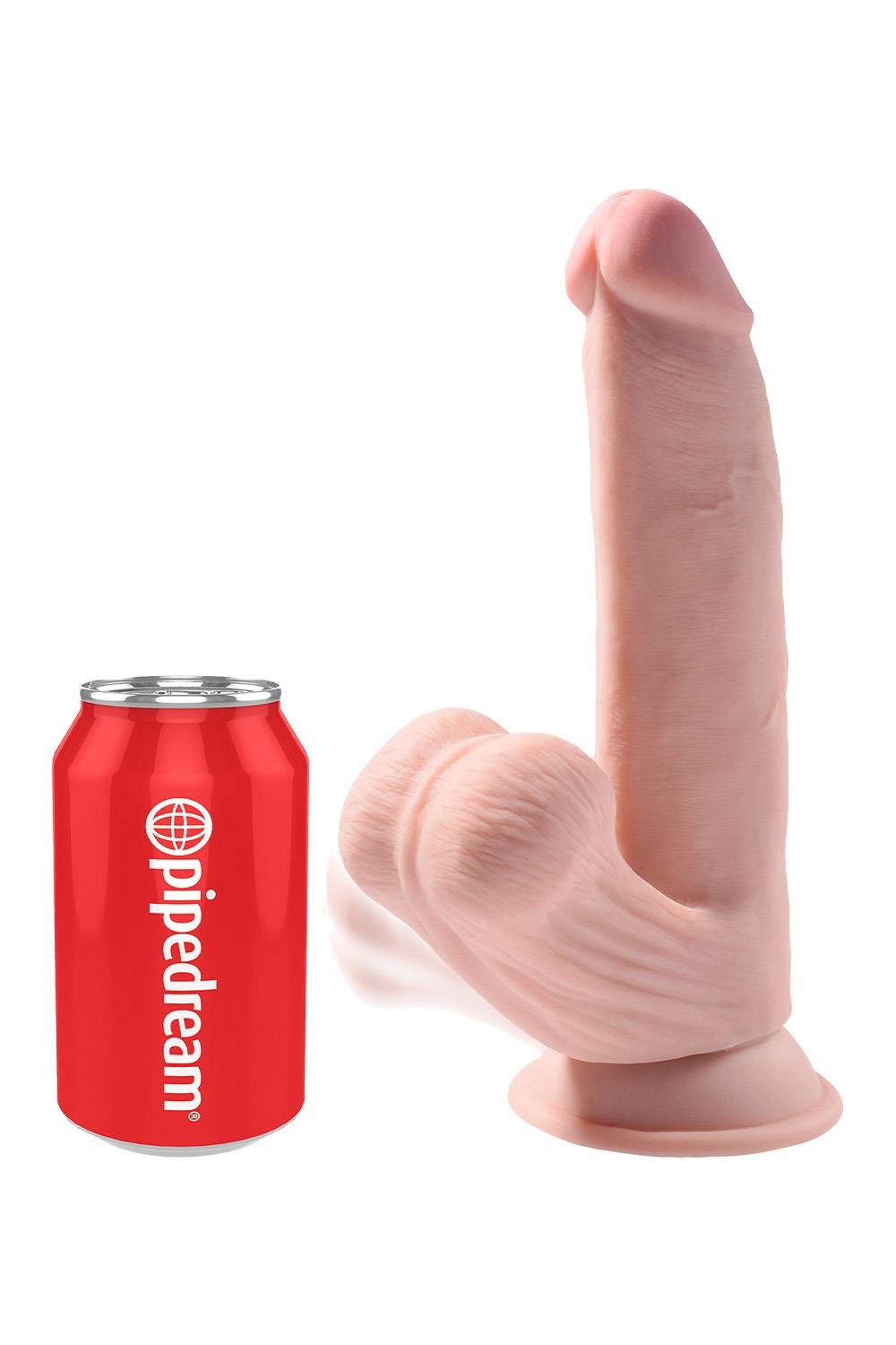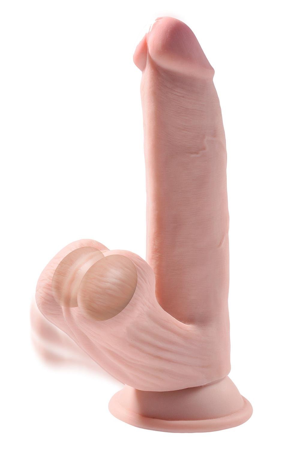 The 8"" King Cock® Plus Triple Density Cock with Swinging Balls is made of new and improved Fanta Flesh® material, making it stiff on the inside and soft on the outside.What makes the Swinging Balls truly special is the carefully crafted construction of the stretchy sack and the incredible feel of the firm internal testicles! With every thrust, the balls come swing and slap against the body for added stimulation!